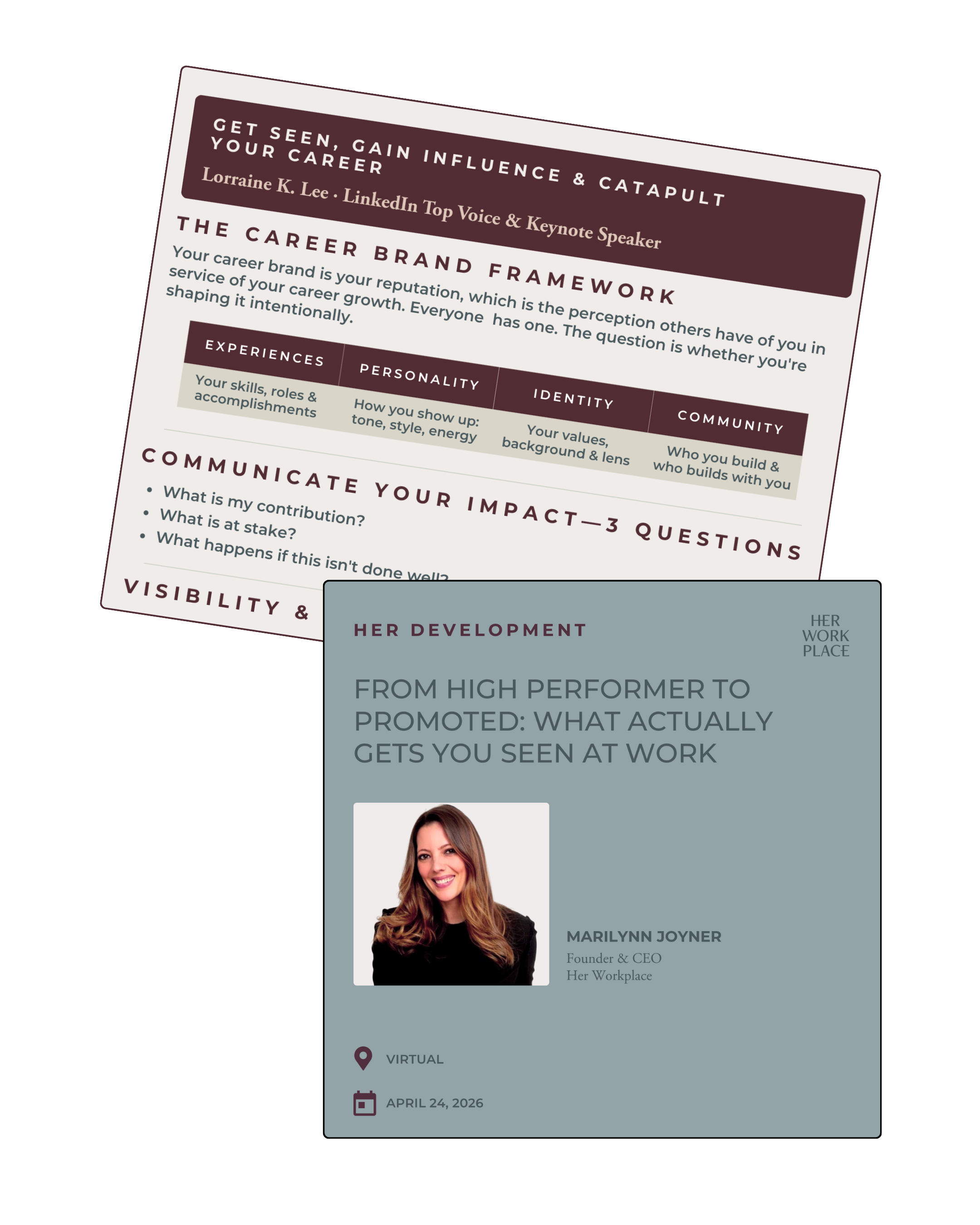 A private, live virtual session led by Marilynn Joyner, Founder & CEO of Her Workplace where you'll apply the playbook directly to your career.